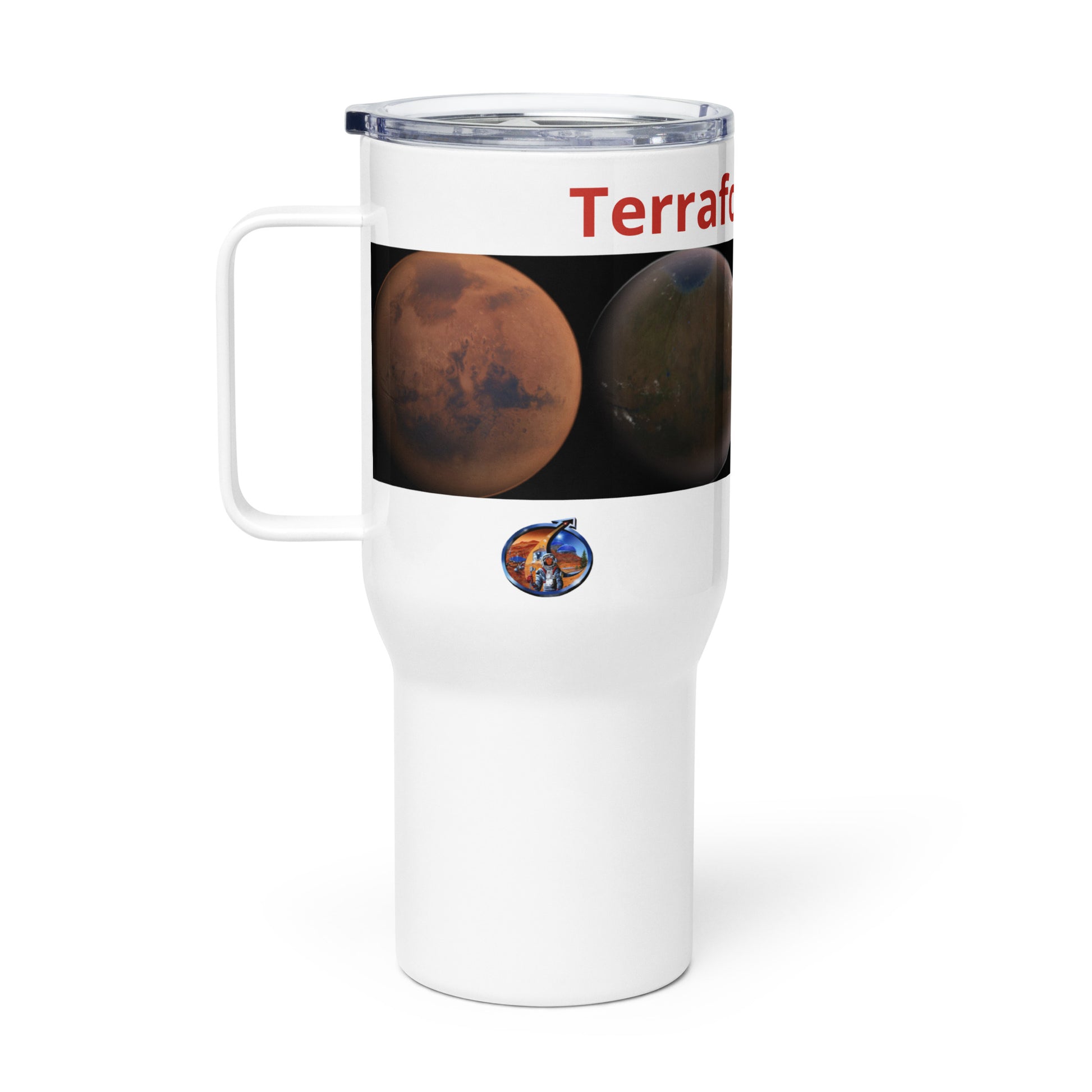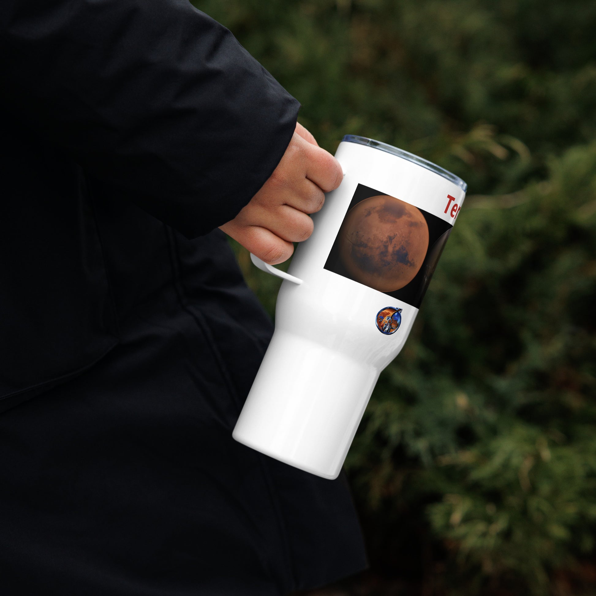 Sip in style and comfort with an elevated travel mug - keeps beverages warm in extreme Martian cold. With its sleek and durable design, you’ll love taking this mug wherever you go. It fits into most rover cup holders and has a spill-proof plastic lid. Commute to work or go on new adventures—this travel mug will keep your beverage safe and at just the right temperature.