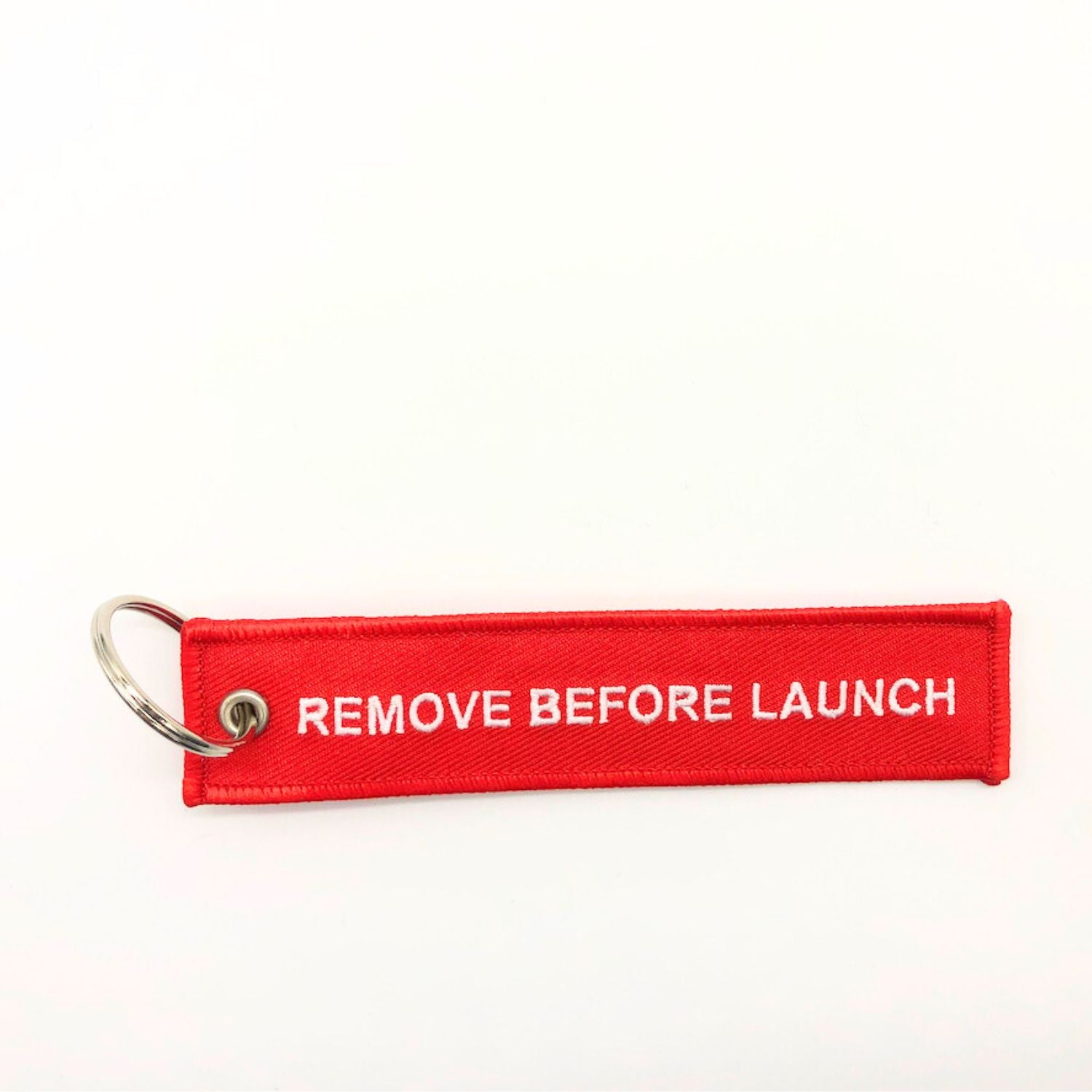 Don't let your car and house keys go inadvertently to Mars (minimum 4 years to get them back). Remove them from the rocket before launch! This 6 inch lanyard in red will be hard to miss, especially with Remove Before Launch embroidered on it.